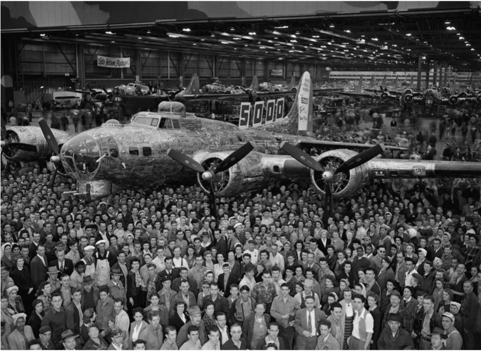 During World War II, Boeing became one of America’s most important aircraft manufacturers. The company produced thousands of military aircraft, including the famous B-17 Flying Fortress and B-29 Superfortress bombers. Massive factories and a huge workforce helped support the Allied war effort and transformed Boeing into a major aerospace company.